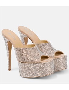 Amina Muaddi Alexa 95 leather-trimmed mesh mules