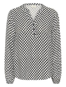 Pluusi stiil: Särkpluus; Disain: Tepitud ääris; Materjal: Viskoos; Muster: Täpiline; Särgi krae: Kraeta; Üksikasjad: Volang, Plisseeritud; Lisad: Toon toonis õmblused; Istuvus: Lõtv tegumood; Varruka pikkus: Pikad varrukad; Pikkus: Tavaline lõige