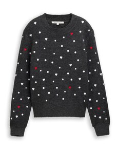 TOM TAILOR DENIM Kampsun tumehall / erkpunane / valge